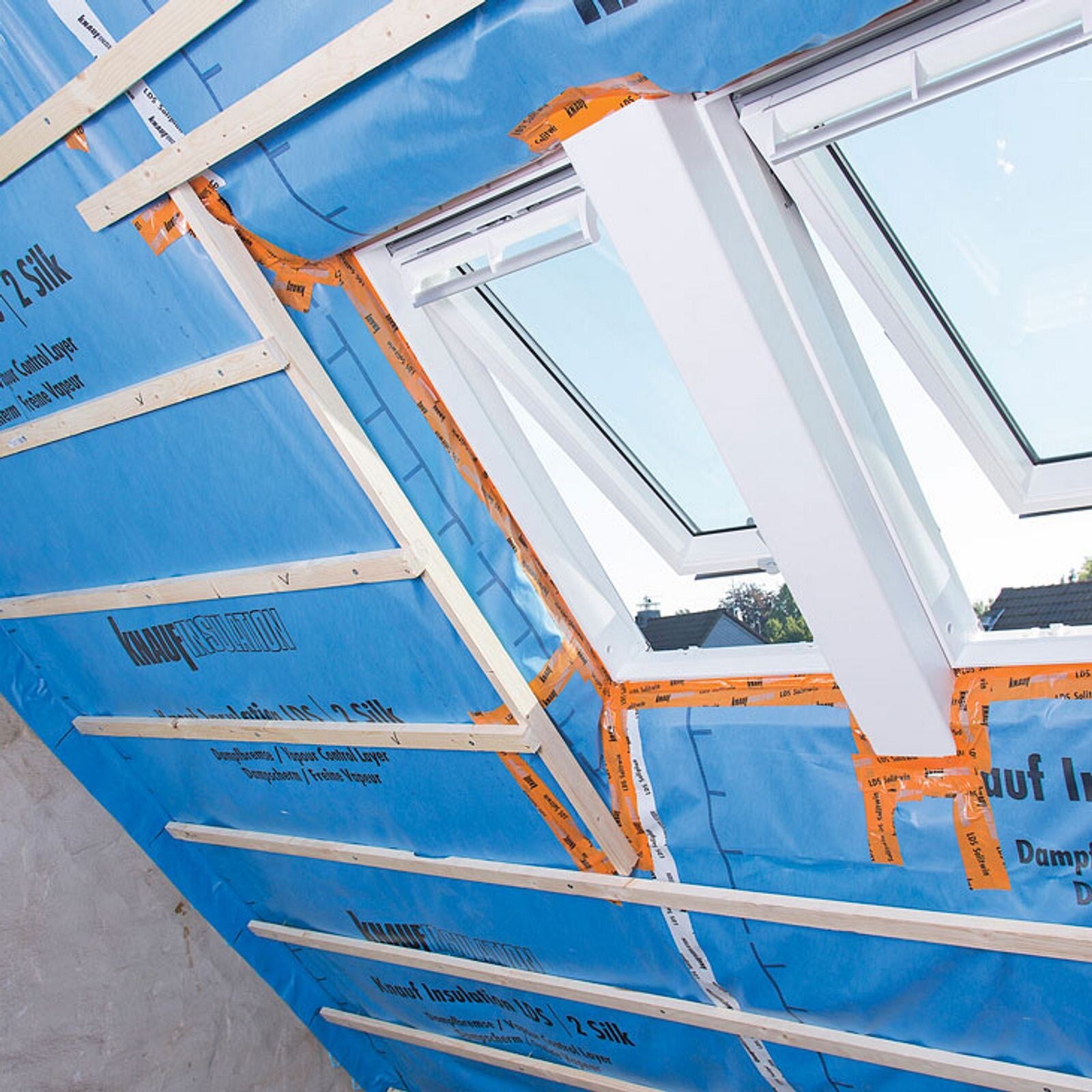 Eine Spezialfolie schützt Ihre Dämmung vor Feuchtigkeit und hält die Wärme genau dort , wo sie hingehört : Im Haus.